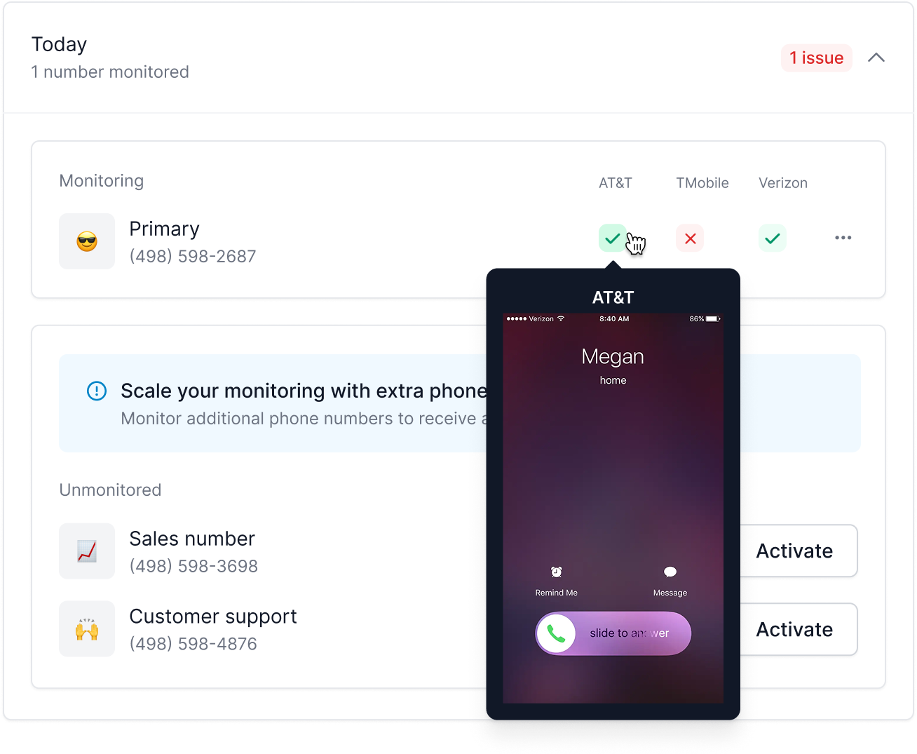 Daily scans across AT&T, T-Mobile, Verizon, and major call-blocking apps. We check your number's reputation so you don't have to become a telecom expert.